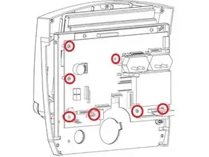 Ослабьте 7 винтов Phillips с полукруглой головкой на основной плате.