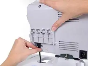 Удалите винт с плоской головкой на дверце USB-сети.
