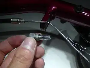 При сборке оболочки убедитесь, что более толстый конец (с наконечником) провода находится рядом с пластиковой ручкой тормоза.