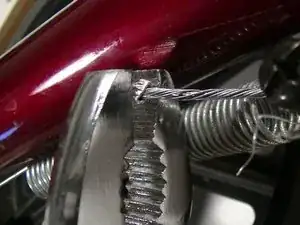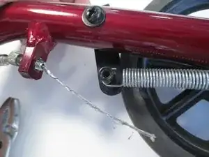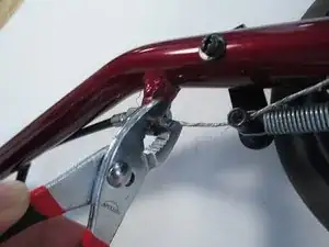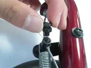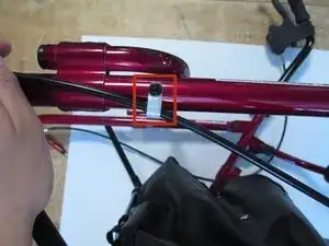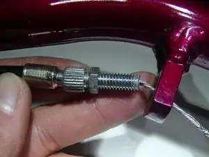 Проследите за проводом до противоположного конца, который крепится к ручке тормоза.