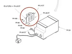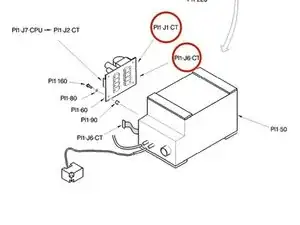 Удалите четыре винта, шайбы и распорные втулки (Pl1.70, Pl1.80, Pl1.90), чтобы извлечь плату управления турбиной (Pl1.60).
