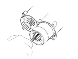 Используйте плоскогубцы с острым носиком, чтобы извлечь левый и правый фильтрующие блоки. На правом фильтре должен быть «чехол»-фильтр.