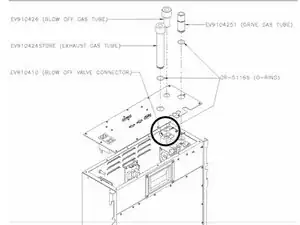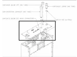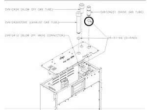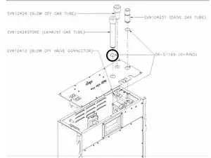 Выньте трубку отвода отработанных газов (EV910424) и замените уплотнительное кольцо в канавке на трубке; смажьте его силиконовой смазкой.