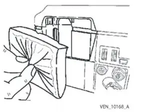 Чтобы обеспечить надежное уплотнение, заправьте углы фильтра в отверстие в корпусе вентилятора.