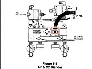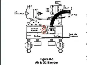 У смесителя воздуха/кислорода есть два винта рядом с платой управления. Удалите их и снимите устройство.