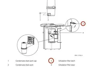 При необходимости удалите выдыхающую ветвь (элемент 4) пациента из выдыхающего фильтра.