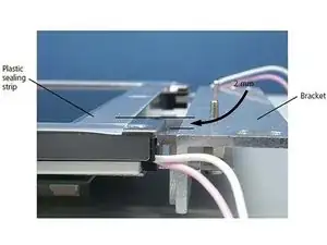 При установке нового дисплея между пластиковыми уплотнительными полосами на ЖК-дисплее и кронштейнами должен быть зазор примерно 2 мм.