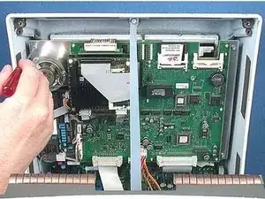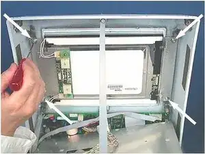 Отверните четыре винта с внутренним шестигранником (Allen), крепящие два кронштейна, на которых установлен ЖК-дисплей.