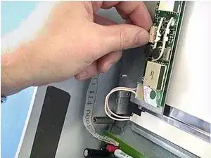 Отведите монтажную пластину с платой управления назад, как «шарнир». Это открывает доступ к ЖК-дисплею.