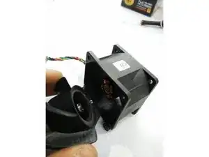 Снять заднюю наклейку с вентилятора.