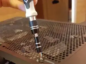 Снимите винты с боковой панели из закалённого стекла руками.