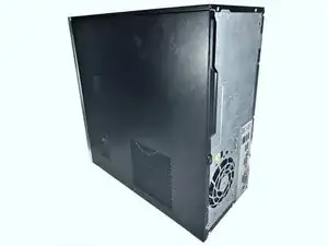 Когда все компоненты закреплены внутри корпуса, сдвиньте боковую панель на место и закрепите её винтом с крупной головкой (ручным винтом).