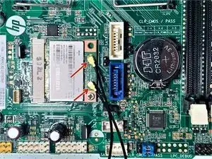 Найдите карточку Wi‑Fi и отсоедините антенные кабели, подключённые к ней.