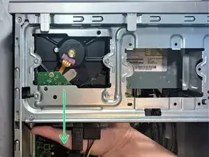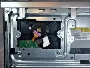 Найдите жёсткий диск, расположенный у передней панели корпуса.