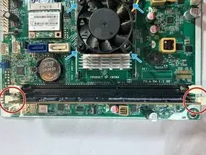 Найдите модуль оперативной памяти и нажмите белые защёлки для его извлечения.