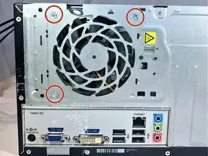 Удалите три винта, удерживающие корпусный вентилятор на месте.