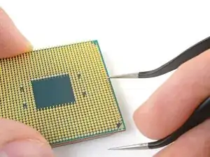 В данном руководстве используется AMD Ryzen 7 2700X, однако процедура применима ко всем процессорам с матричным расположением выводов (PGA), включая все процессоры для разъёмов AMD AM2, AM2+, AM3, AM3+ и AM4. Это руководство не подходит для процессоров с контактной площадкой (LGA), таких как современные процессоры Intel и AMD AM5, поскольку у них контакты находятся в разъёме материнской платы, а не на самом процессоре.