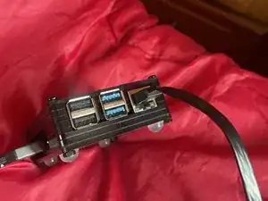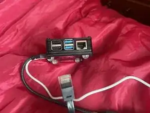 Возьмите ваш Raspberry Pi 4 и подключите кабель RJ45 в доступный порт, показанный на изображении, который является разъёмом RJ45.
