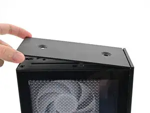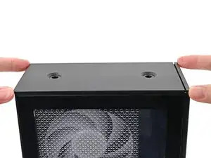 Сдвиньте верхнюю панель к задней части корпуса, чтобы освободить защёлки, фиксирующие её к шасси.
