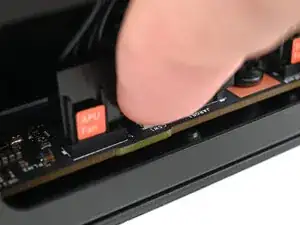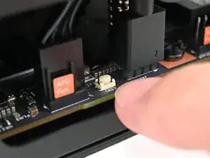 Нажмите белую кнопку с надписью «CMOS RESET» рядом с разъёмом вентилятора APU и удерживайте 10 секунд.