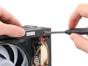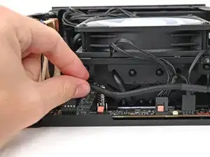 Проложите кабель вентилятора под радиатором и заправьте его за серебряный винтовой стояк.