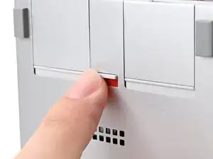 Если под задвижкой расширяющей карты виден красный бар, используйте палец, чтобы перевести задвижку и зафиксировать расширяющую карту в слоте.