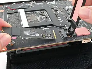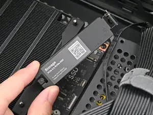 Следующие четыре шага показывают, как установить вторичное накопление до установки материнской платы; однако вам может потребоваться установить и другие компоненты, такие как модуль Wi‑Fi.