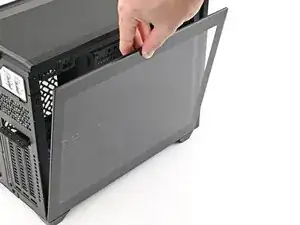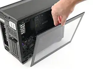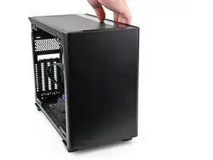 Снимите боковую панель корпуса, чтобы получить доступ к вырезу для материнской платы.