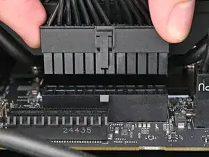 Ориентируйте 24‑контактный основной кабель питания так, чтобы его защёлка была обращена от радиатора.