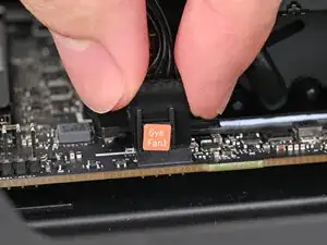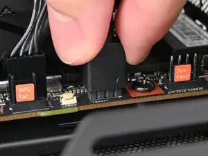 Наденьте основной кабель вентилятора на четырёхконтактный разъём с маркировкой "APU Fan", убедившись, что оранжевая метка встаёт между вертикальными метками.