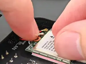 Разместите разъём антенного кабеля над левым коаксиальным гнездом Wi‑Fi‑модуля.
