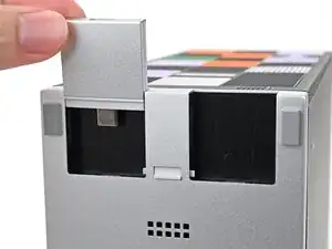 Наденьте правую панель на правый край шасси и прижмите ее, чтобы защелки зафиксировались на месте.