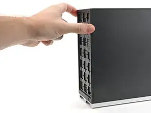 Наденьте левую панель на левый край шасси сверху вниз и прижмите ее, чтобы защелки зафиксировались на месте.