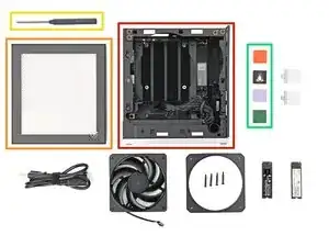 Распакуйте корпус Framework Desktop и убедитесь, что вы получили следующие компоненты: