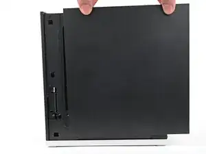 Пальцами возьмитесь за верх правой панели и сдвиньте ее вверх, чтобы освободить защелки.