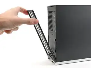 Поднимите системный блок, чтобы он стоял вертикально на рабочей поверхности.