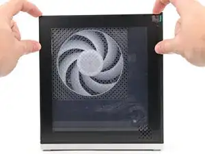 Пальцами потяните переднюю панель, чтобы отсоединить ее от магнитов, удерживающих ее на шасси.