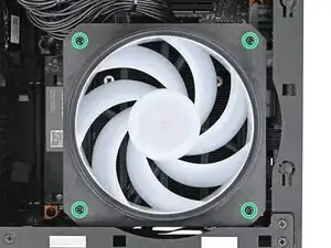 Используйте отвертку Framework Desktop, чтобы установить четыре винта Phillips длиной 27,3 мм, которые крепят вентилятор и воздуховод.