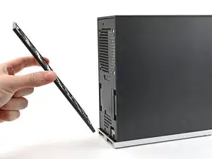 Положите настольный компьютер на правую сторону, чтобы его открытая внутренняя часть была обращена вверх.