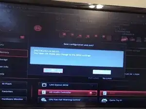 Если все модули отображаются корректно, выйдите из Click BIOS, нажав кнопку X в правом верхнем углу, и подтвердите выход, нажав «Yes» в появившемся диалоговом окне.