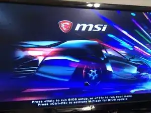 Закройте корпус и включите компьютер. Когда появится загрузочный экран MSI, нажмите клавишу Delete. Если компьютер загрузился в Windows или Linux, вы не успели нажать Delete достаточно быстро. Выключите компьютер и включите снова. При своевременном нажатии клавиши Delete запустится MSI Click BIOS.