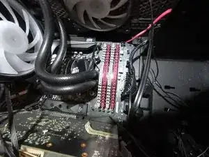 Найдите модули оперативной памяти. Они располагаются в верхней правой части материнской платы.