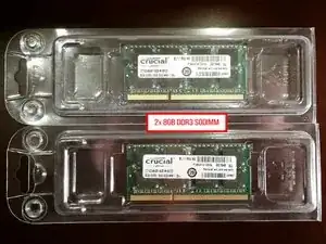 Это руководство содержит пошаговые инструкции по поиску двух слотов SODIMM внутри компьютера, снятию установленного модуля памяти и установке двух новых модулей.