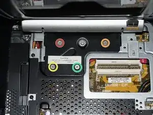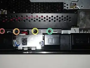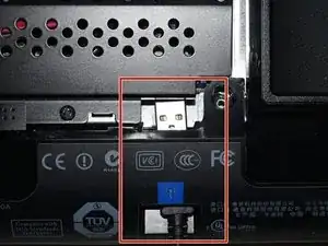 Удалите 2 винта под крышкой оптического привода. Подсказка: если с этой крышкой возникают трудности, используйте лопатку или пластиковой монтажный инструмент, чтобы снять её.