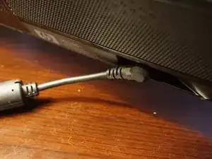 Чтобы снять заднюю крышку системы, необходимо извлечь приёмник клавиатуры. Для этого потяните приёмник за выемку, чтобы освободить его. После этого он должен выйти из внутреннего USB‑порта, освободив заднюю крышку.
