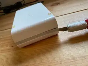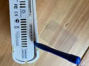 Используя тонкий лезвие, аккуратно приподнимите наклейку с передней стороны устройства.