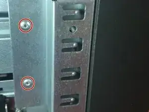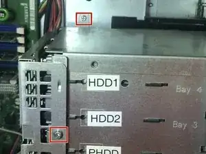 Чтобы снять корзину для жёсткого диска (отсек 3,5"), необходимо отвернуть скрытые винты.
