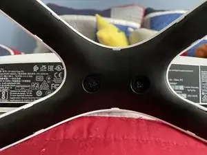 Перевернув устройство, мы видим два винта с крестообразной головкой, крепящие подставку к компьютеру.