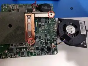 Чтобы снять вентилятор, выкрутите два винта с крестообразным шлицем, которые его крепят. Затем отсоедините его от материнской платы.