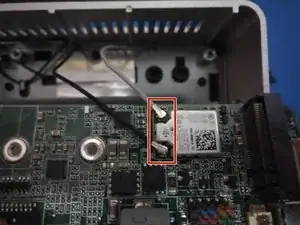 Обязательно отсоедините антеннные кабели от беспроводной карты перед снятием материнской платы.